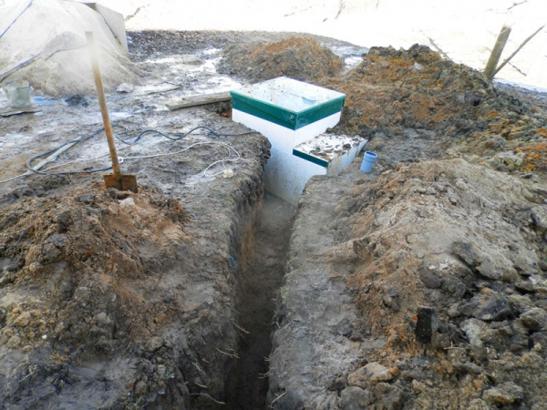 Траншея для труб должна быть правильной глубины. Во время монтажа септика производительностью 3 м3 в сутки придется столкнуться с несколькими видами труб: отводящими, подводящими и дренажными для фильтрационных полей. В зависимости от этого трубы закапываются на различную глубину.