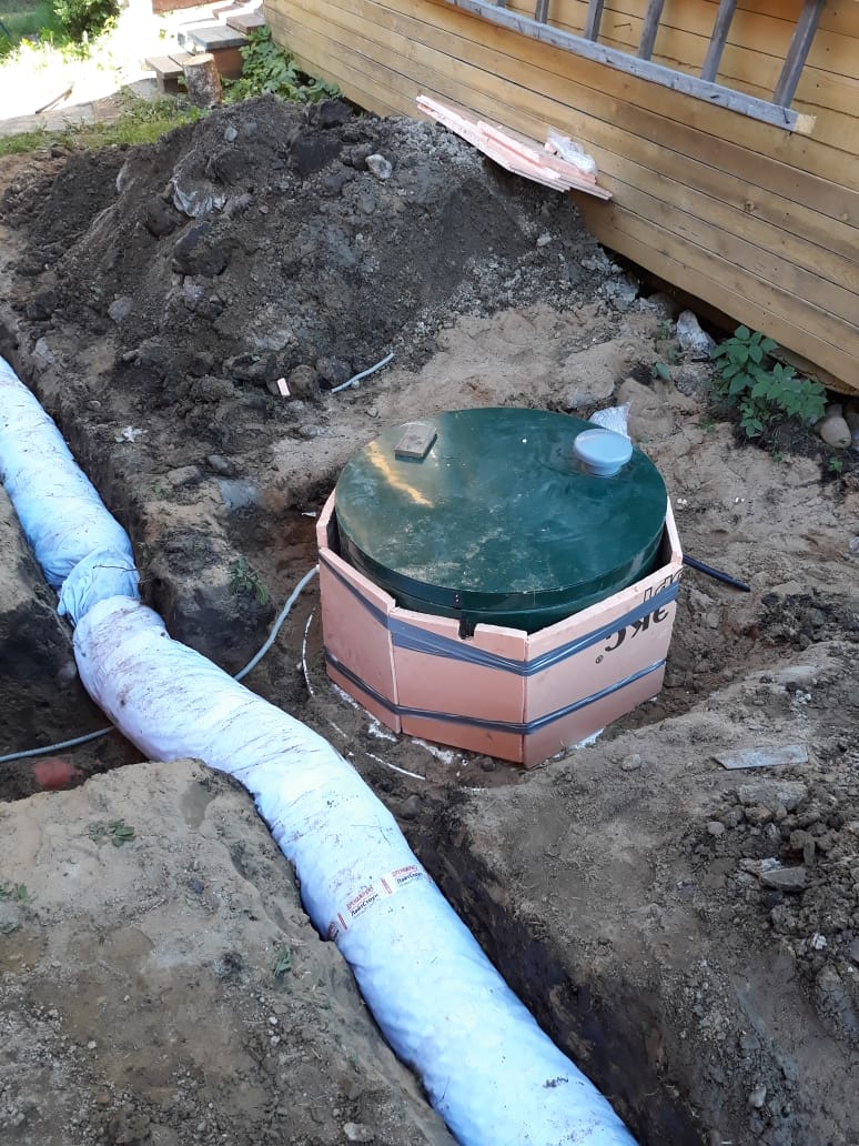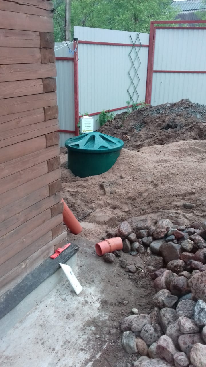 Рытье котлована с размерами: диаметр – диаметр септика + 0,7 м, глубина – высота септика + 0,2 м под песчаную подушку.