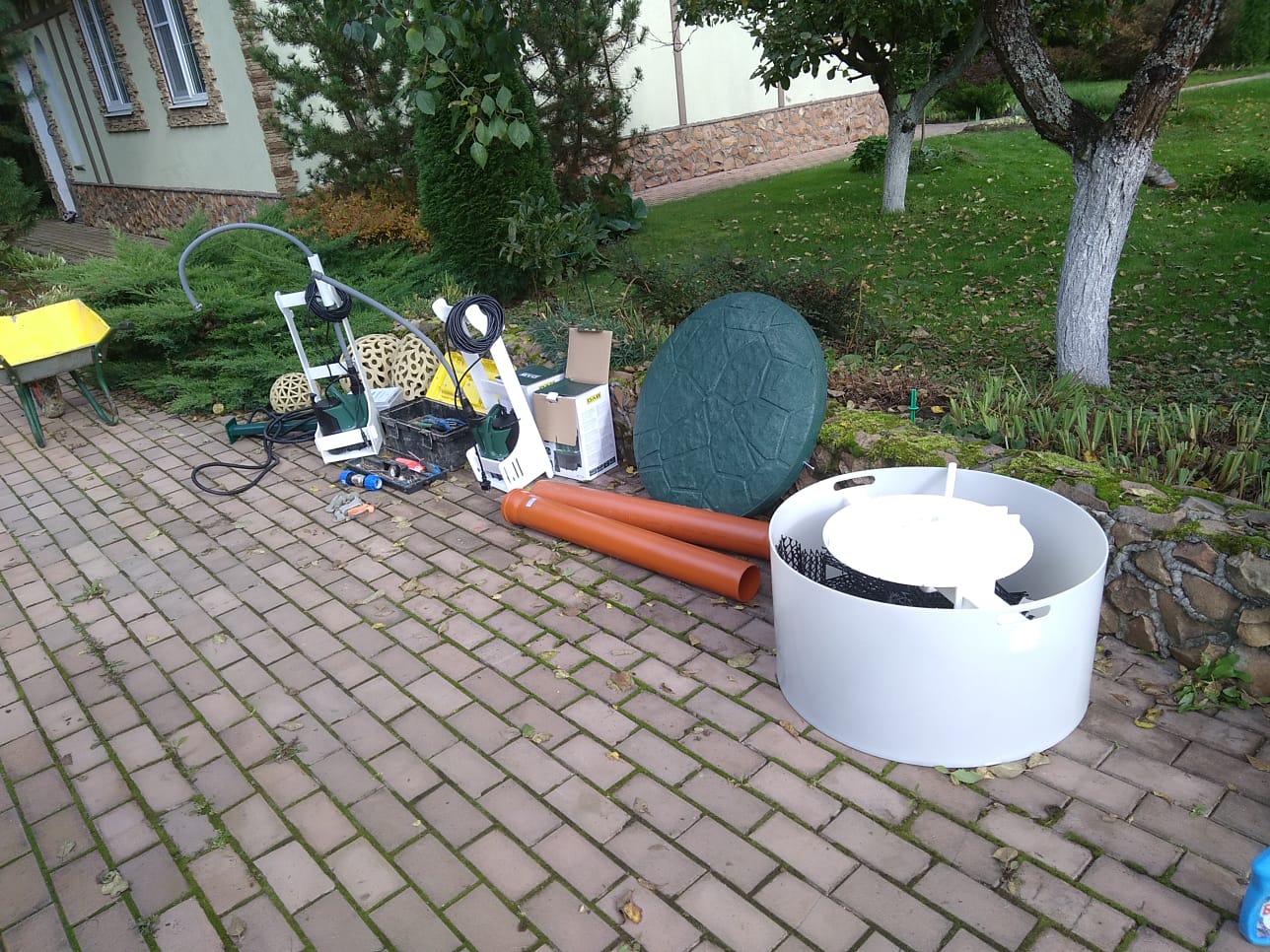 - Если вода из системы используется для полива, то каждые три месяца (или по мере расхода дезинфекционных таблеток) необходимо менять загрузку в камере обеззараживания — положить 3 таблетки в специальный поплавок.